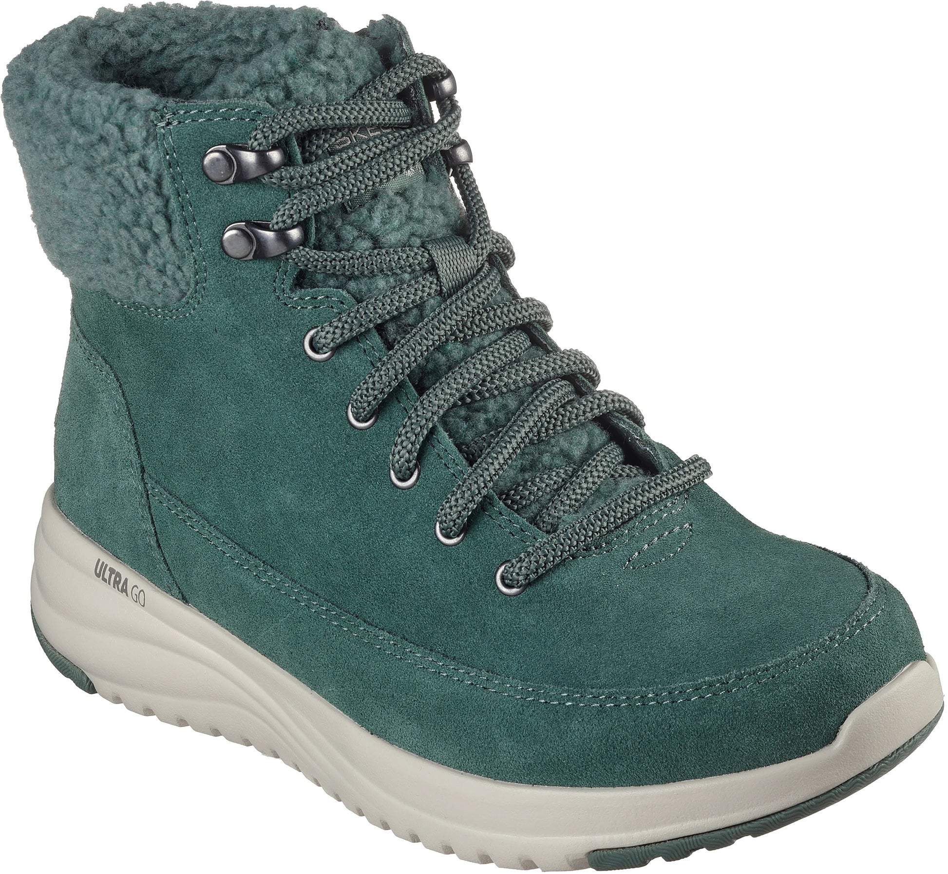 Stay warm throughout the season with Skechers Waterproof: On-The-GO® Stellar - Winterize. This waterproof lace-up boot features a genuine suede upper with a faux shearling collar and lining, Skechers Air-Cooled Goga Mat™ insole, and lightweight ULTRA GO® cushioning.