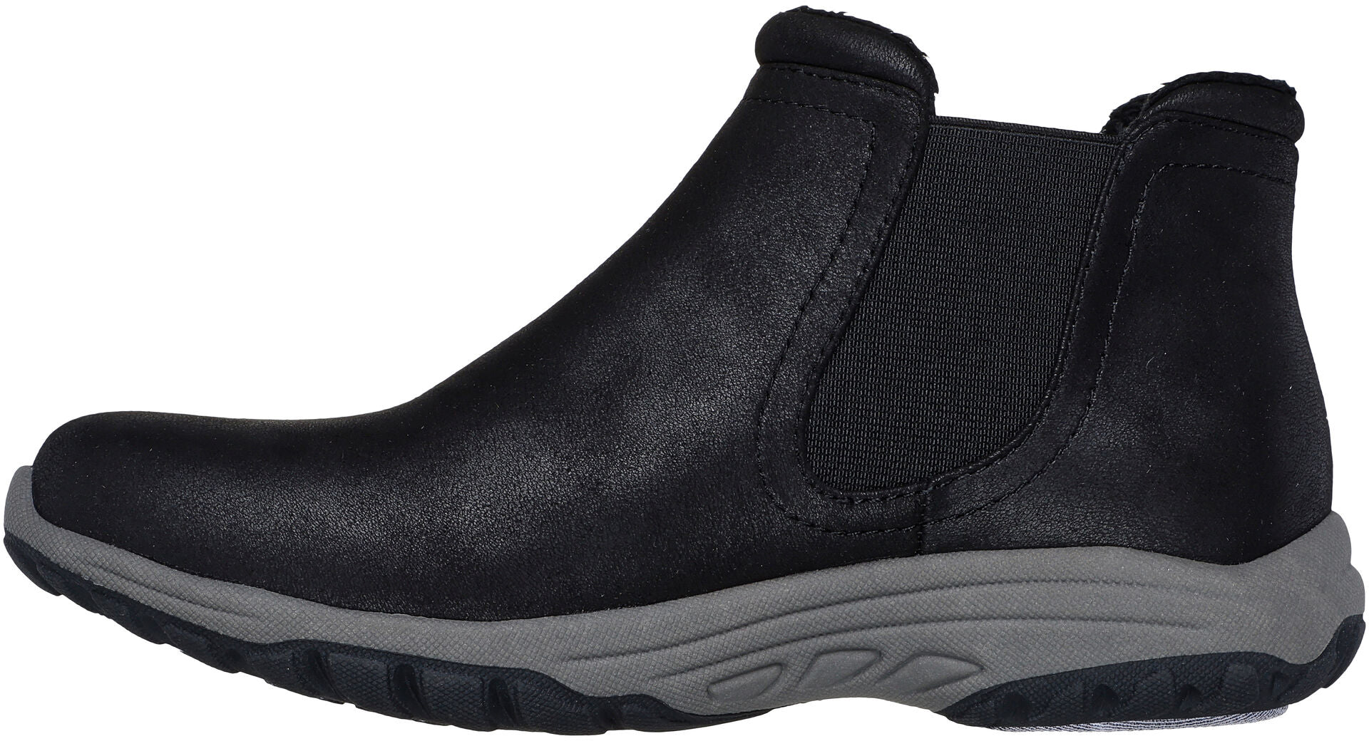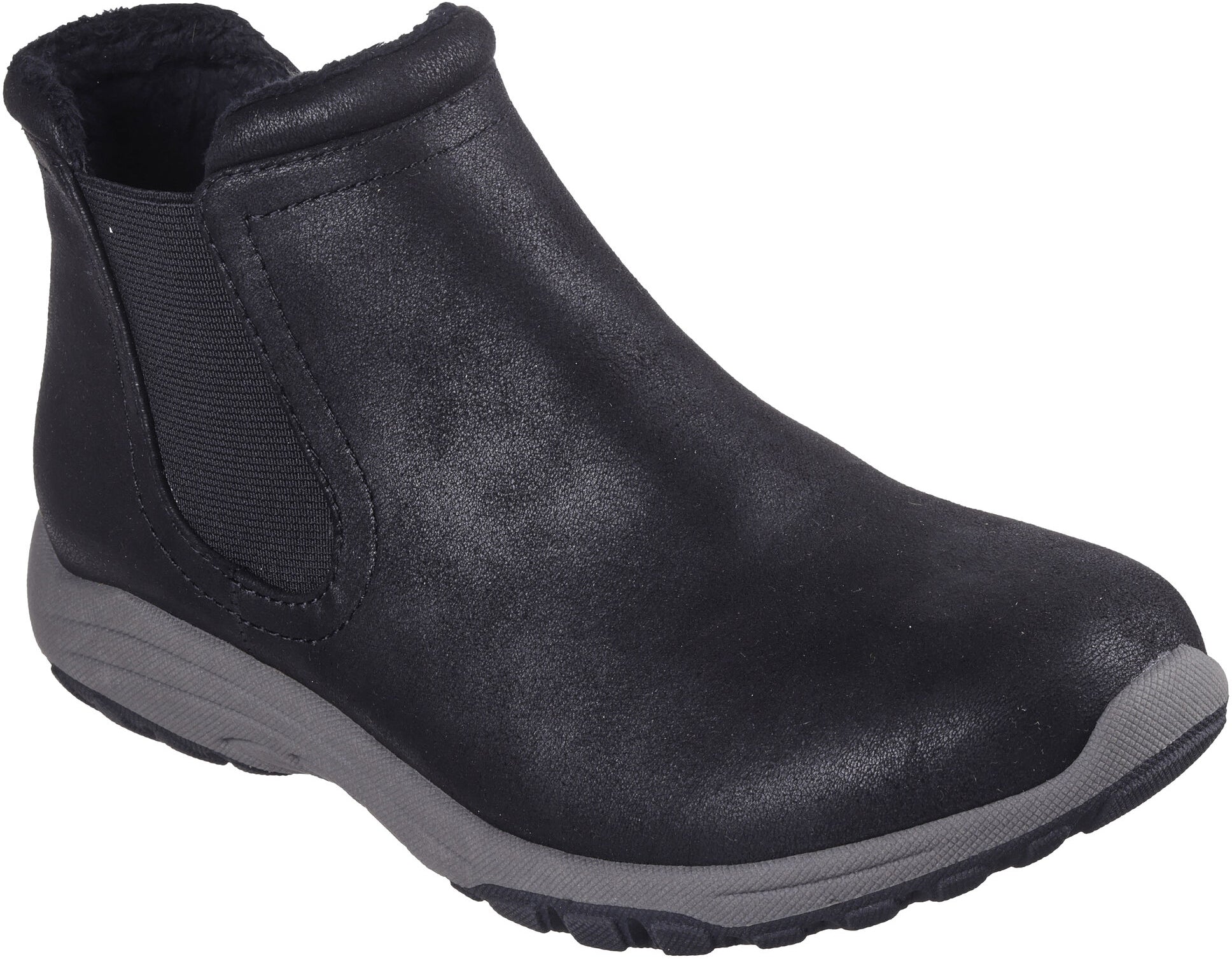Experience comfort with every stride in Skechers Relaxed Fit®: Reggae Fest 2.0 - New Yorker. This slip-on Chelsea bootie features a synthetic microleather upper with a Skechers Air-Cooled Memory Foam® insole.