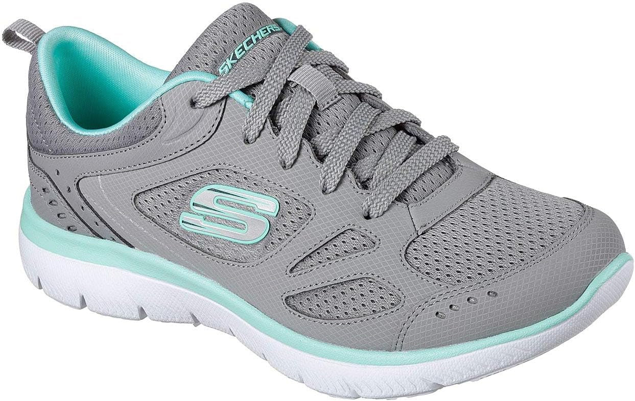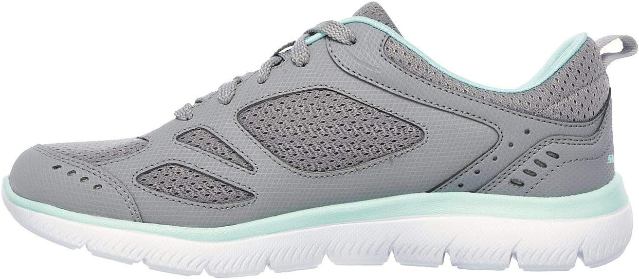 Find the versatile sporty style and comfort that fits your needs with the SKECHERS Summits - Suited shoe. Smooth action leather and mesh fabric upper in a lace up athletic training sneaker with stitching accents. Memory Foam insole.