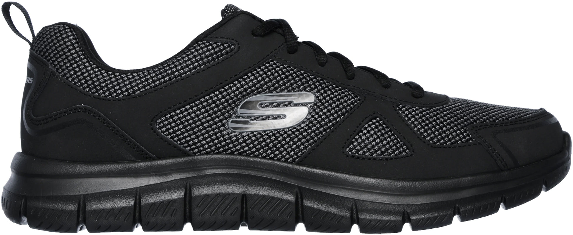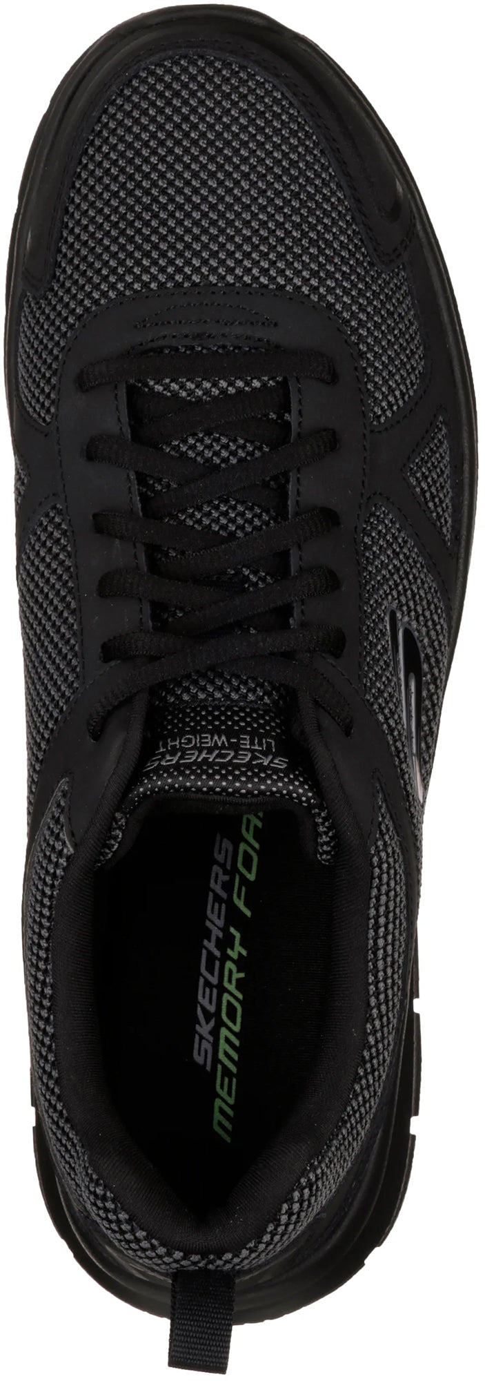 Add lightweight comfort and sporty style to your workout with the SKECHERS Track - Bucolo shoe. Smooth action leather and mesh fabric upper in a lace up athletic training sneaker with stitching and overlay accents. Memory Foam insole.