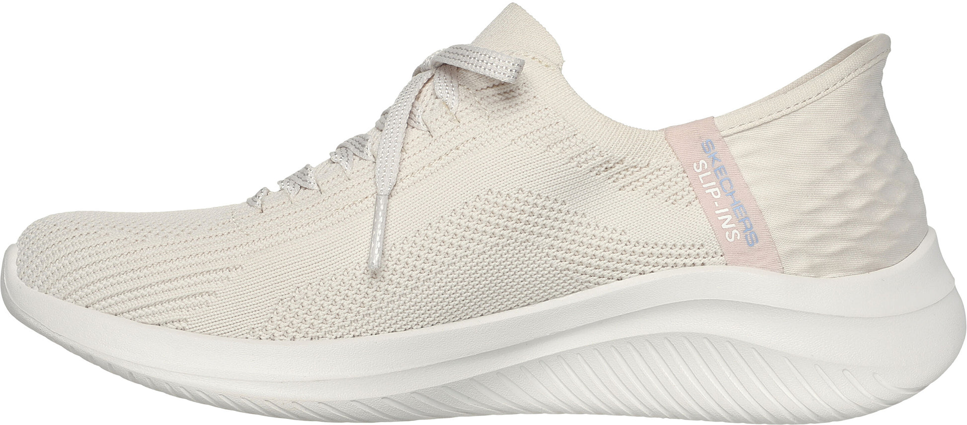 TOUCHLESS FIT™ Step into effortless comfort with Skechers Hands Free Slip-ins®: Ultra Flex 3.0 - Brilliant Path. Designed with our exclusive Heel Pillow™. This style features a Stretch Fit® engineered knit upper with deco laces, plus a cushioned Skechers Air-Cooled Memory Foam® insole.