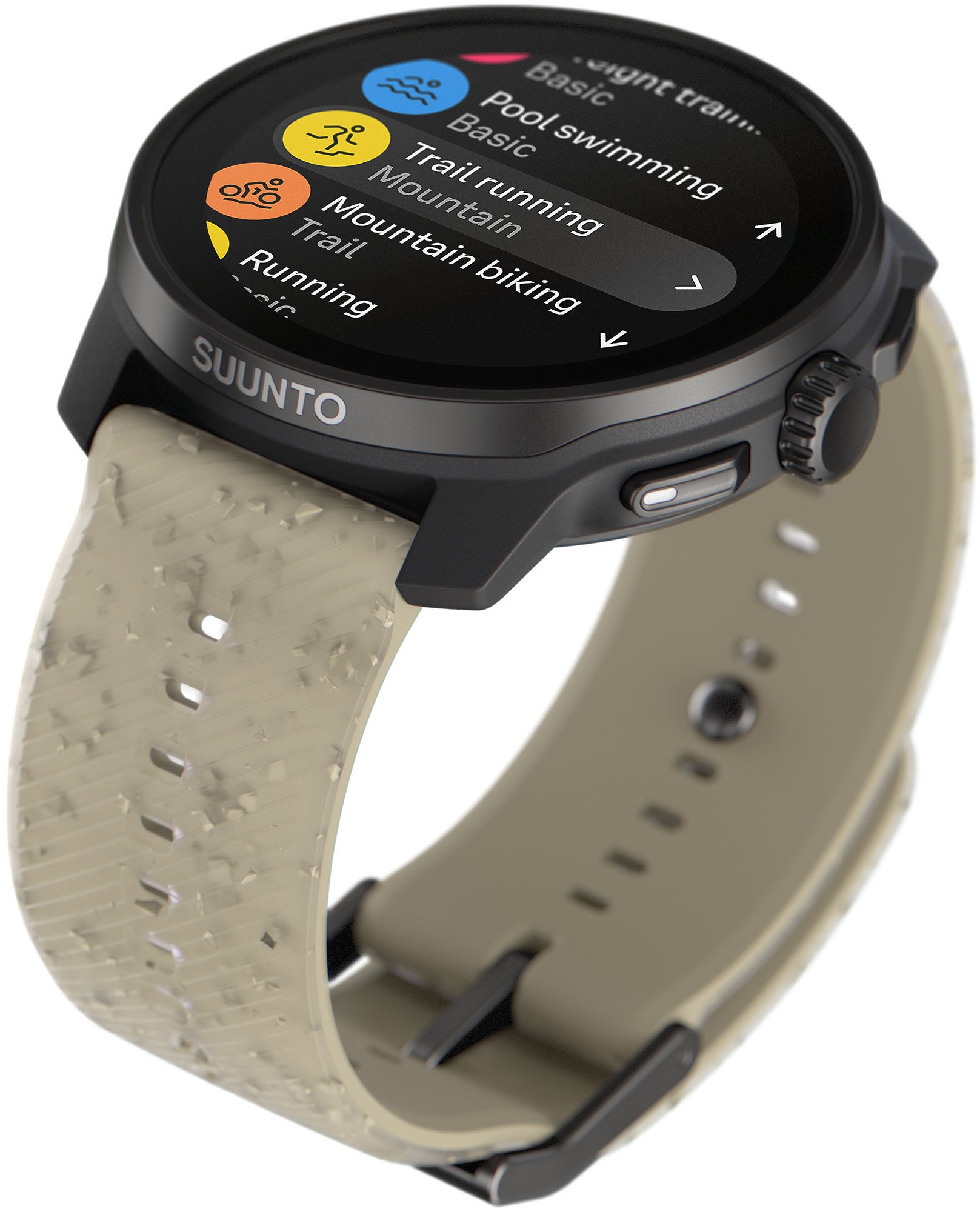 Suunto Race S has a sleek, smooth look to suit different styles, and a smaller, compact fit. With its lighter weight, it adds comfort in races, training and everyday.