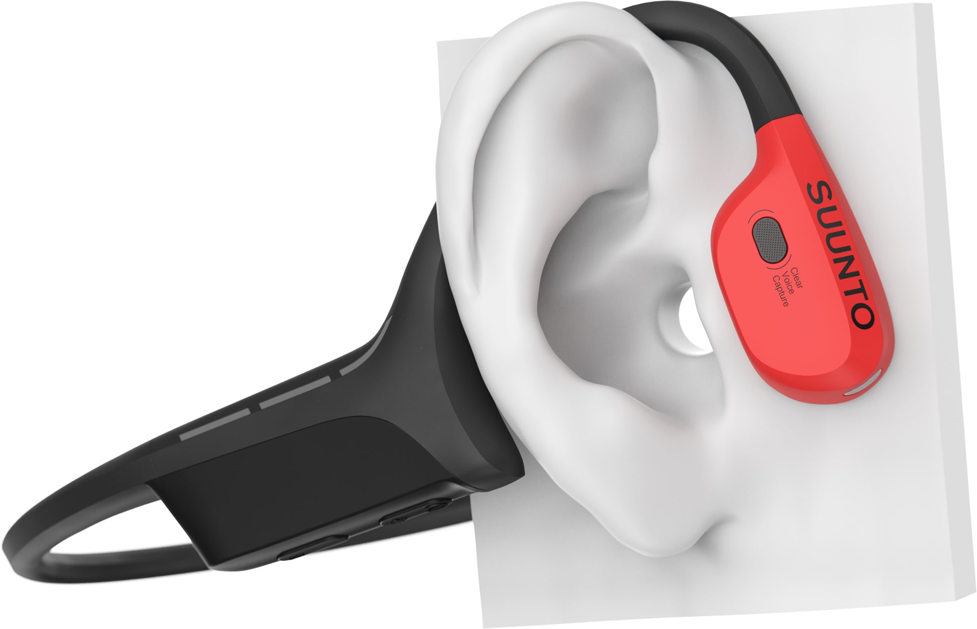 Open-ear technology allows you to listen to music and at the same time still hear your surroundings. Instead of traditional in-ear headphones, Suunto Wing sits on your jawbone leaving your ear canal open to stay aware of the nature or traffic around you.