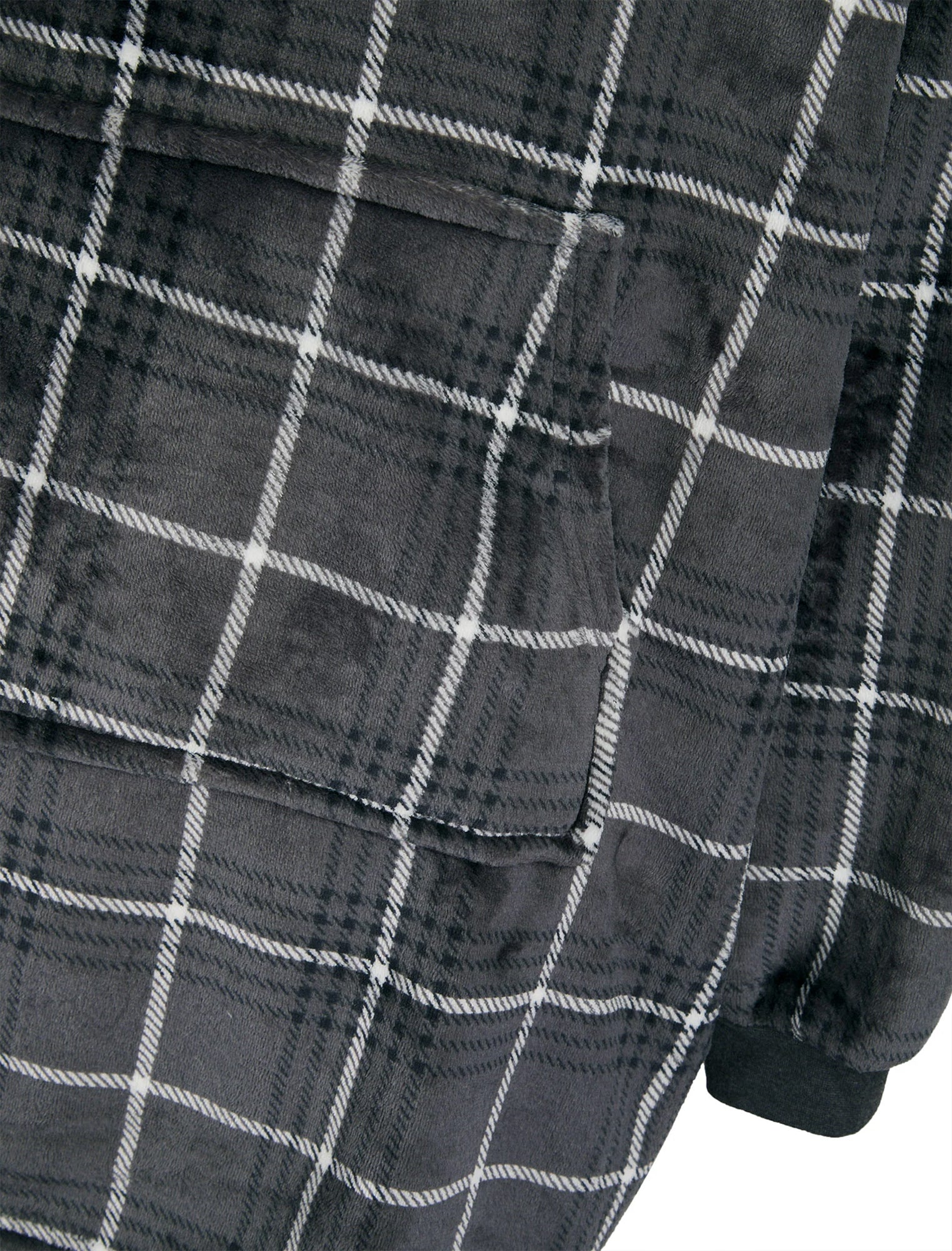 Stay cozy and stylish this season with the 'Lenox' checked tartan soft fleece borg-lined oversized hooded blanket with pocket in grey check by Tokyo Laundry. Whether you’re lounging at home or winding down for the night, this oversized hoodie promises the perfect combination of warmth and comfort.