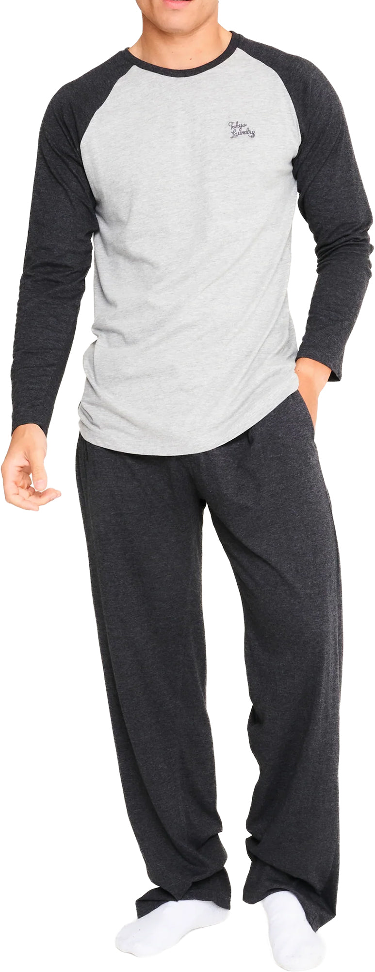 Style up your nightwear with this versatile ‘Tudor’ 2pc long sleeve cotton lounge set in light grey marl / charcoal marl by Tokyo Laundry. This pyjama set is made from cotton rich, jersey stretch materials for added comfort and features a baseball style long sleeve top with contrast coloured sleeves and a classic crew neckline. Our signature logo is embroidered on the left hand chest, with a branded woven label on the bottom right hem. The bottoms are a loose, straight leg bottom with an elasticated waistband, adjustable drawcords and two welted side pockets to finish. Ideal for gifting or wearing for yourself, simply add a dressing gown on top and you’re ready to relax for the evening.