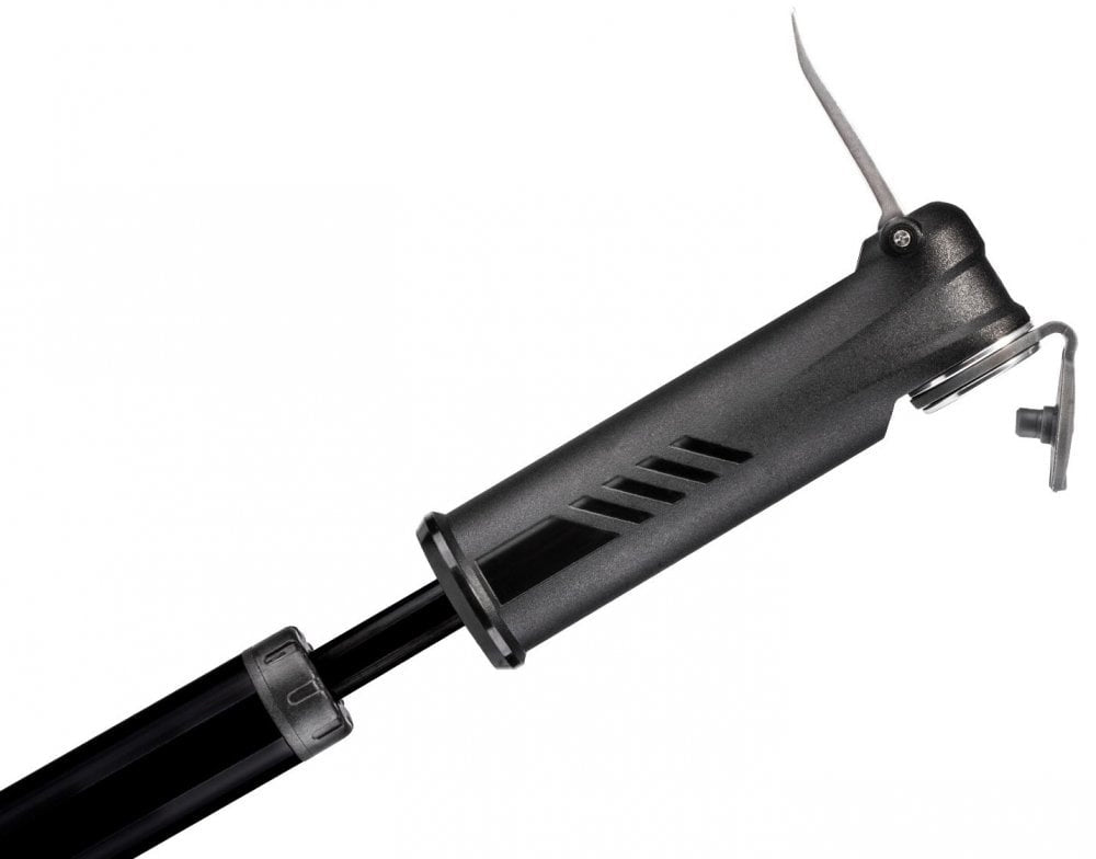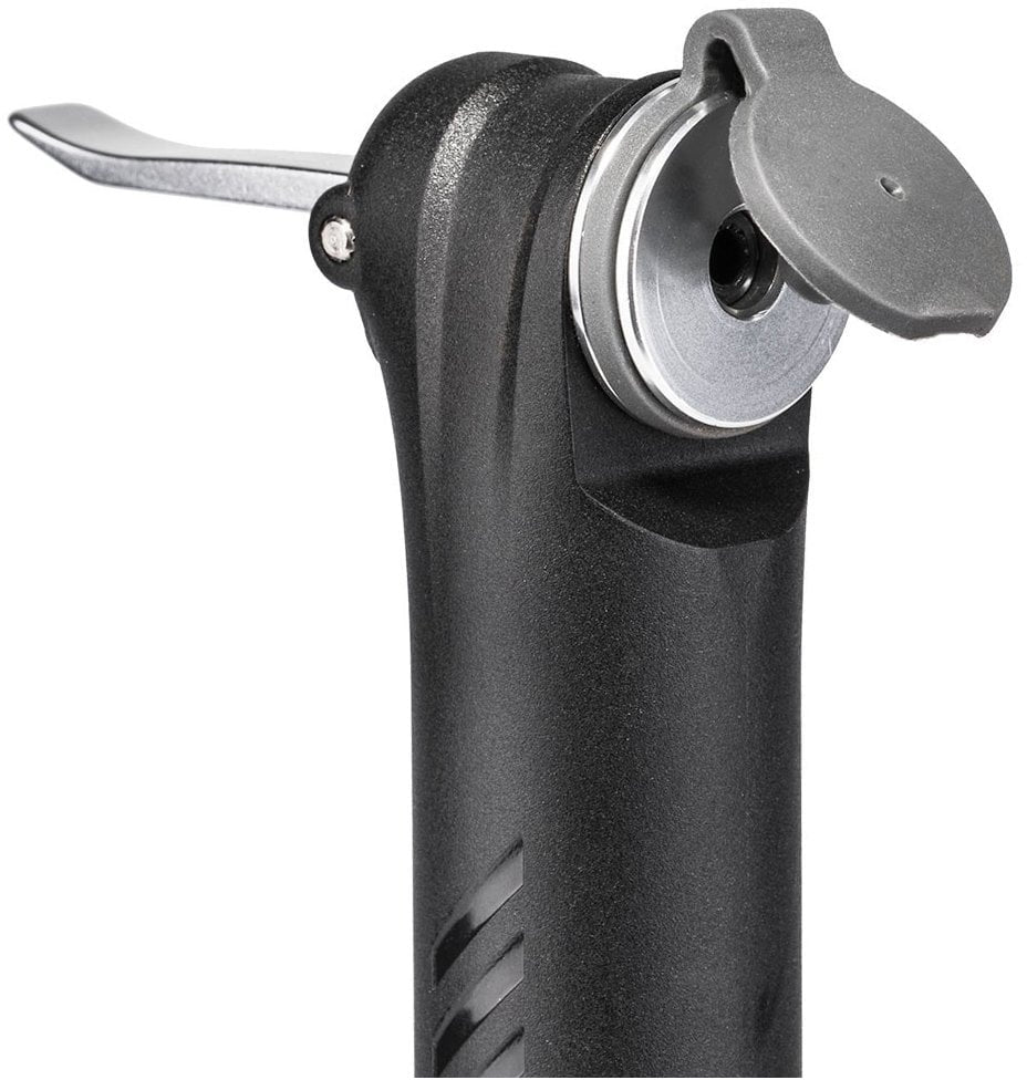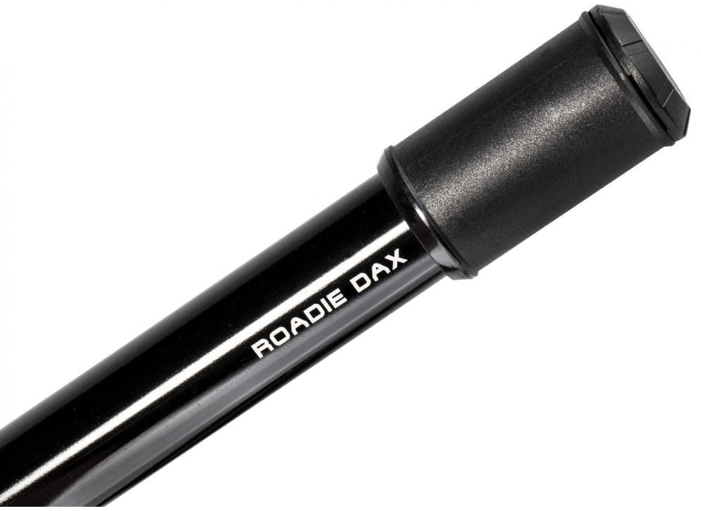 The Roadie DAX inflates high pressure road tyres fast. Dual-Action (DA) doubles volume by inflating on both the push and pull strokes. Integrated dust cap keeps pump head clean and thumb lock lever insures air-tight seal.